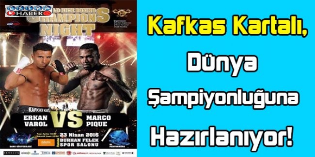 Türk kickboks tarihinin yetiştirmiş olduğu en büyük yeteneklerden birisi olan ve Kafkas Kartalı olarak bilinen milli sporcu Erkan Varol, Dünya Şampiyonluğuna hazırlanıyor. 23 Nisan Ulusal Egemenlik ve Çocuk Bayramı’na denk gelen bu şampiyona Burhan Felek Spor Salonu’nda Marco Pıque ile karşılaşacak.