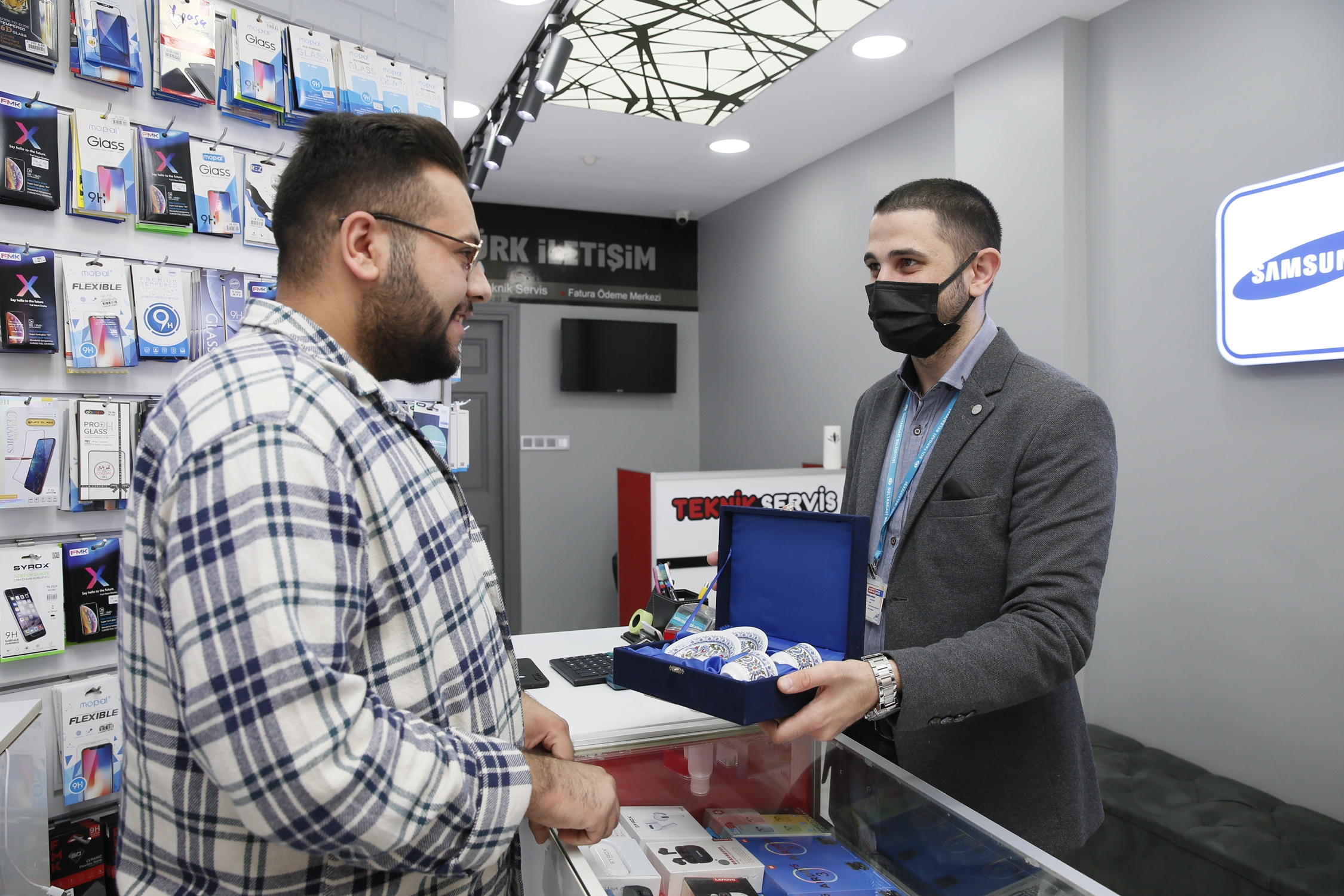 Akıllı Saha ekiplerinin ziyaret ettikleri 1000. esnaf, Erdem Öztürkler oldu. 50. Mahallesi’nde telefon ve telefon aksesuarları dükkânı bulunan Öztürkler’e, 1000. ziyaret dolayısıyla ekiplerin küçük bir sürprizi de vardı. Ekiplerin, Belediye Başkanı Av. Abdurrahman Dursun gönülden selamıyla birlikte kendisine takdim edilen şık fincan takımını alan Öztürkler, “Orhangazi Caddesi üzerinde faaliyet gösteriyoruz ve yaklaşık 6 yıldır buradayız. İlk defa böyle bir çalışma görüyorum. Belediyemizden ekipler esnafları geziyorlar, dertlerini dinliyorlar. Bizler de bu şekilde belediyeyle daha iyi bir iletişim kuruyoruz. Dertlerimize çözüm bulunması açısından güzel. Bence gerekli bir şey bu. Biz 1000. esnaf olmuşuz. Demek ki bizden önce 999 kişiye ulaşmışlar. Bu çok güzel bir sayı. Hoş da bir hediye getirmişler, sağ olsunlar. Güzel bir hatıralık oldu, mutlu oldum. Hem Belediye Başkanımıza hem de bizi ziyarete gelen arkadaşlara çok teşekkür ediyorum.” dedi.
