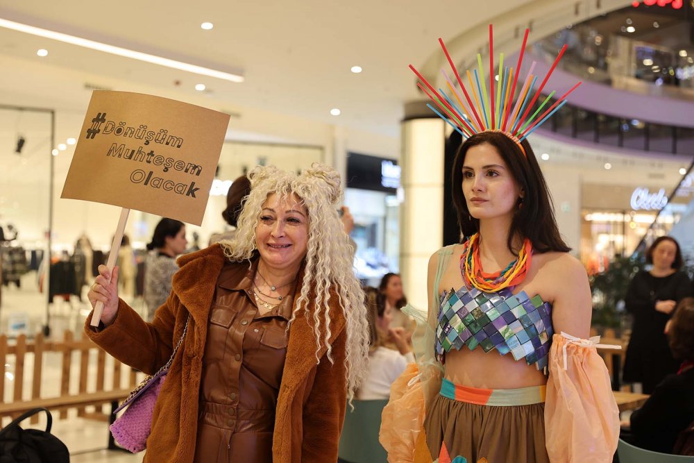 “Dönüşen Manken Var” sloganıyla hazırlanan etkinlikte, atıklardan giydirilmiş manken alışveriş merkezinde dolaşarak yurttaşların yoğun ilgisini çekti. Programa; Ataşehir Belediyesi İklim Değişikliği ve Sıfır Atık Müdürü Ayten Bağdatlıoğlu Kartal, Devridaim Enstitüsü Kurucu Ortağı Yasemin Uluçınar, Proje Sorumlusu Özlem Şahin, Sürdürülebilir Ürün Tasarımcıları Hare Andaç, Gülşah Kara, Çocuk Programları Sorumlusu Cansu Çakıcı ile Ataşehirli yurttaşlar ve çocuklar katıldı.