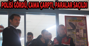 Polisi gördü, cama çarptı, paralar saçıldı