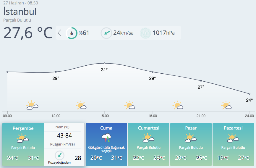 Doğu Karadeniz, Doğu Anadolu'nun kuzeydoğusu, Bursa'nın doğusu, Sakarya'nın güney kesimleri, Bilecik, Afyonkarahisar'ın kuzeyi, Uşak, Kütahya, Manisa'nın kuzeydoğusu, Bolu, Karabük, Ankara'nın kuzey ve batısı, Eskişehir ve Ordu çevrelerinin yerel olmak üzere sağanak ve gök gürültülü sağanak yağışlı geçeceği tahmin ediliyor. Yağışların öğle saatlerinden sonra Rize ile Artvin'in kıyı kesimlerinde yerel olarak kuvvetli (21-50 kg/metrekare) olması bekleniyor.